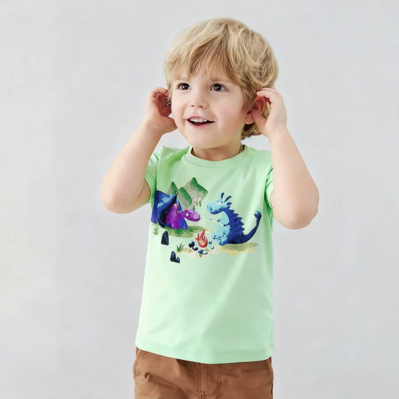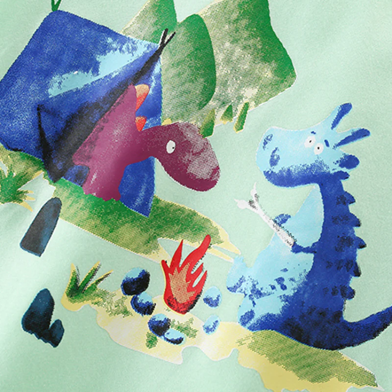 - Type: Jongens t-shirt met dinosaurus campingprint