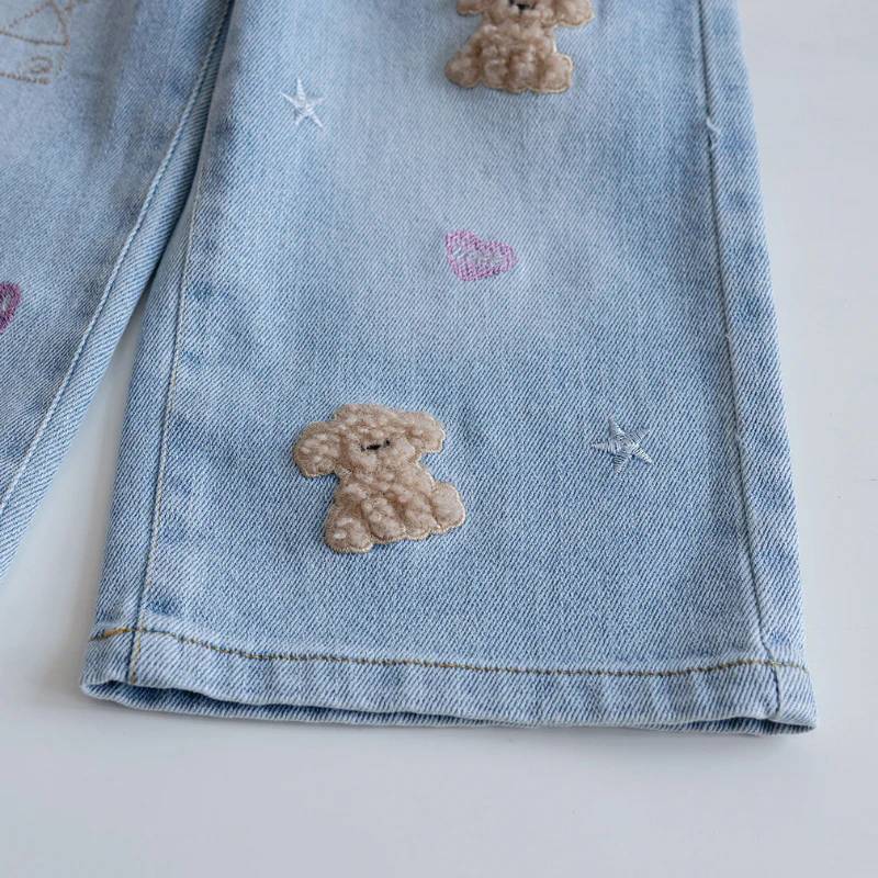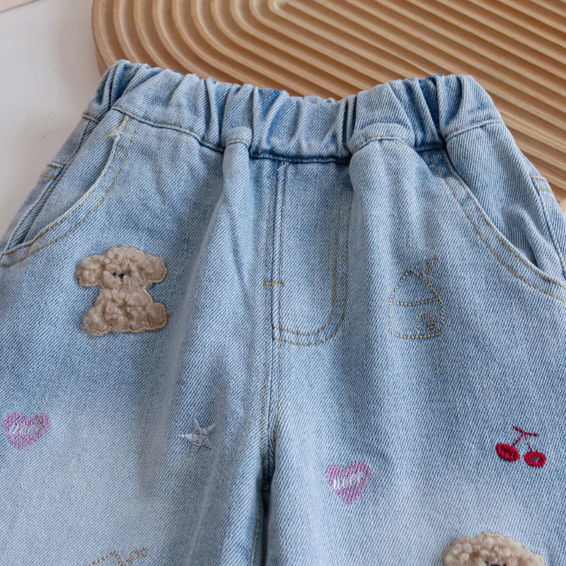 Speelse Meisjes Jeans met Beer Borduurdetails