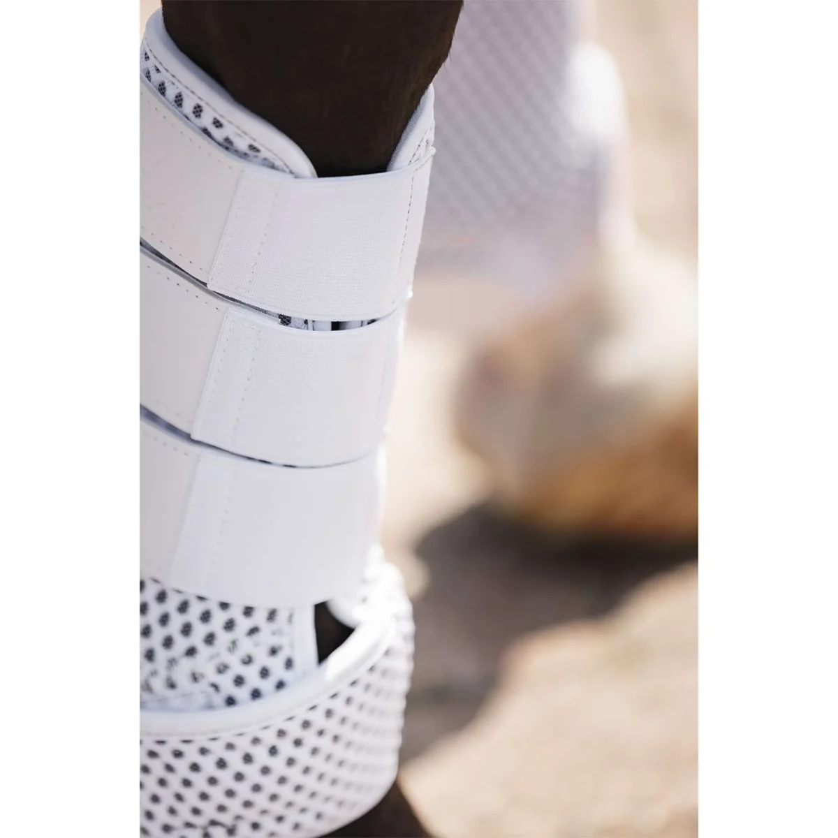 • 3D mesh buitenkant voor extreem goede ventilatie • Ademende neopreen binnenvoering voor uitstekende schokabsorptie • Extra lange klittenbandsluiting aan de onderkant voor extra bescherming van de kogel PRODUCTINFORMATIE Beschrijving: De 3D Mesh Boots ondersteunen de benen van het paard en zijn extreem ademend en vochtafvoerend om ervoor te zorgen dat de benen van het paard droog blijven onder de beschermers en niet oververhit raken. Producteigenschappen: De 3D mesh buitenkant heeft meerdere lagen om het ventilatievermogen te optimaliseren. De binnenkant is ook gemaakt van ademend neopreen waardoor vocht en warmte snel worden afgevoerd. Neopreen heeft ook een schokabsorberende werking om ervoor te zorgen dat eventuele klappen worden geabsorbeerd. De klittenbandsluitingen zijn elastisch voor een perfecte pasvorm en aan de uiteinden bekleed met PU-materiaal. De extra lange klittenbandsluiting aan de onderkant biedt extra bescherming aan de kogel. Wasvoorschriften: • Wassen met gelijke kleuren • Sluit de klittenbandsluitingen • Wassen op 30°C Maatgegevens: Maat S: 2 klittenbandsluitingen – Pony/Cob voorbenen Maat M: 3 klittenbandsluitingen – Pony/Cob achterbenen / Hele voorbenen Maat L: 3 klittenbandsluitingen – Hele achterbenen / Extra Hele voorbenen Maat XL: 3 klittenbandsluitingen – Extra Hele achterbenen