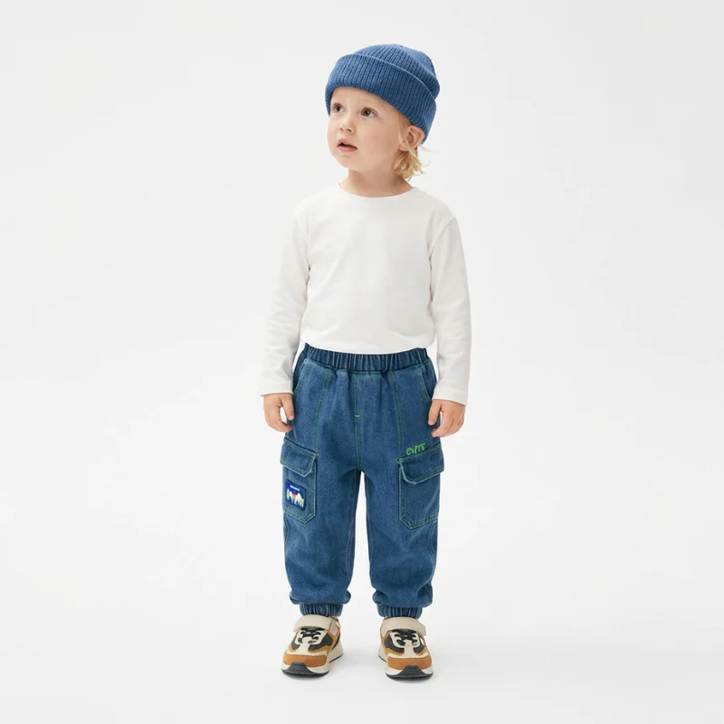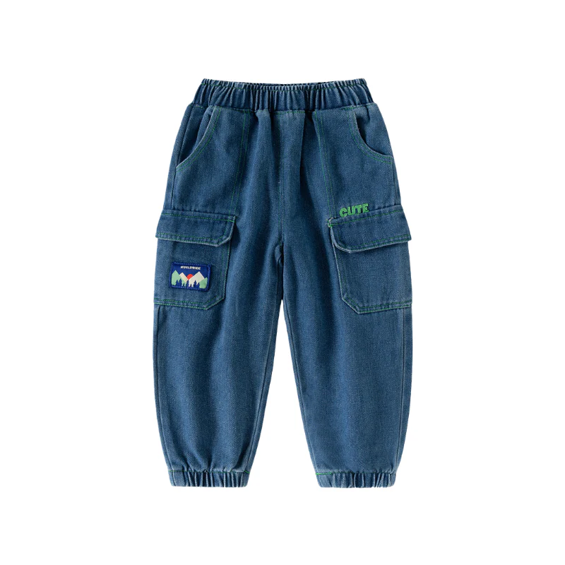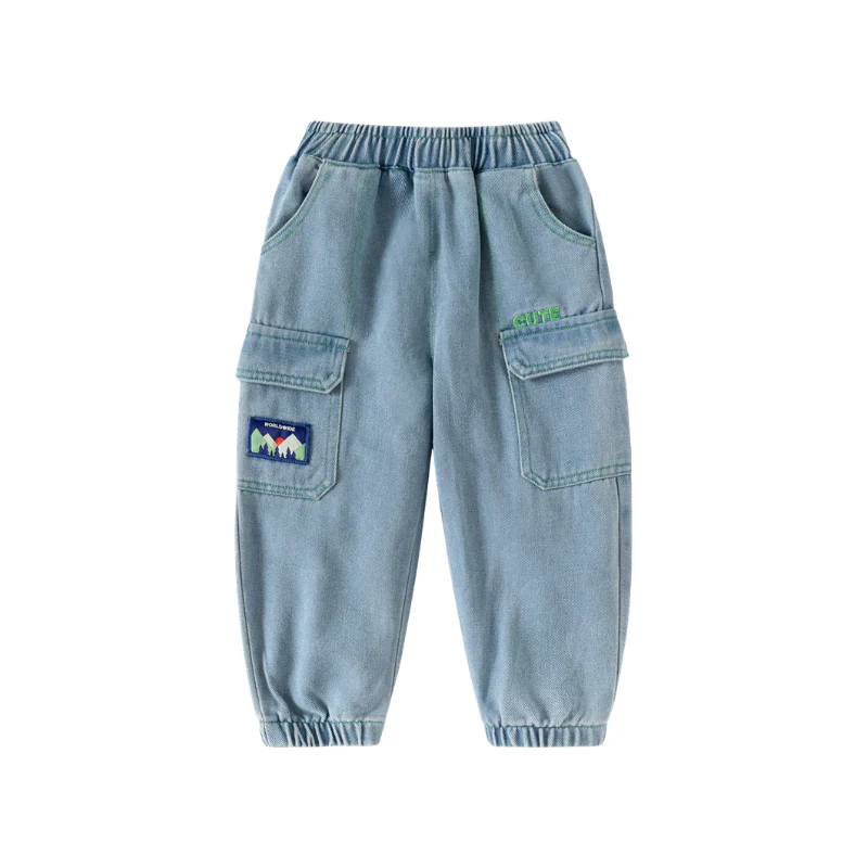 - Type: Jongens denim cargo jeans met elastische tailleband