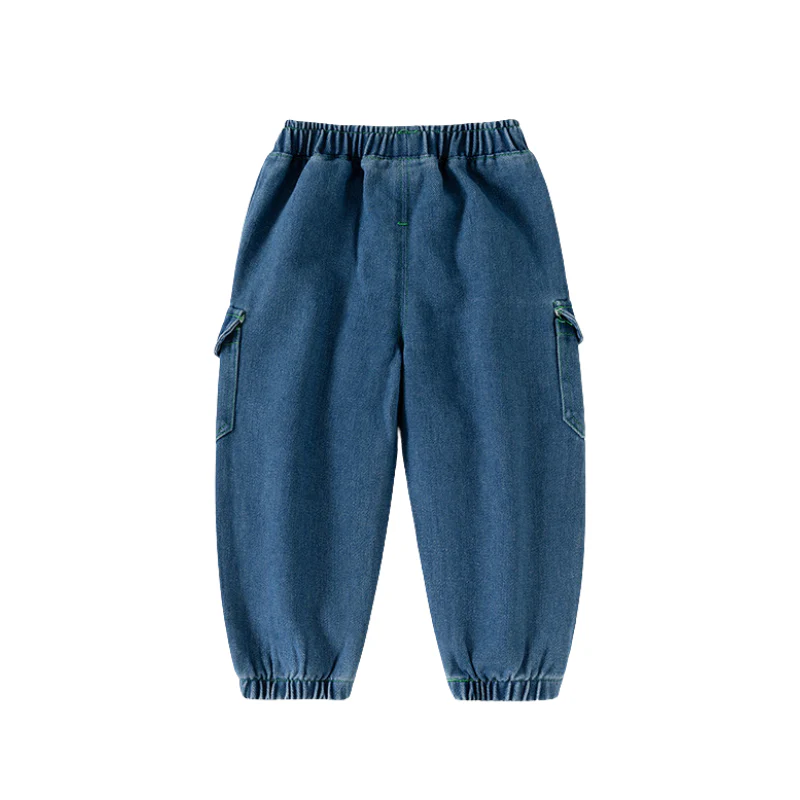 Laat je jongen comfortabel bewegen, spelen en nieuwe avonturen beleven met Ivar – Denim Cargo Jeans, een stoere jeans die perfect past bij actieve dagen vol plezier!