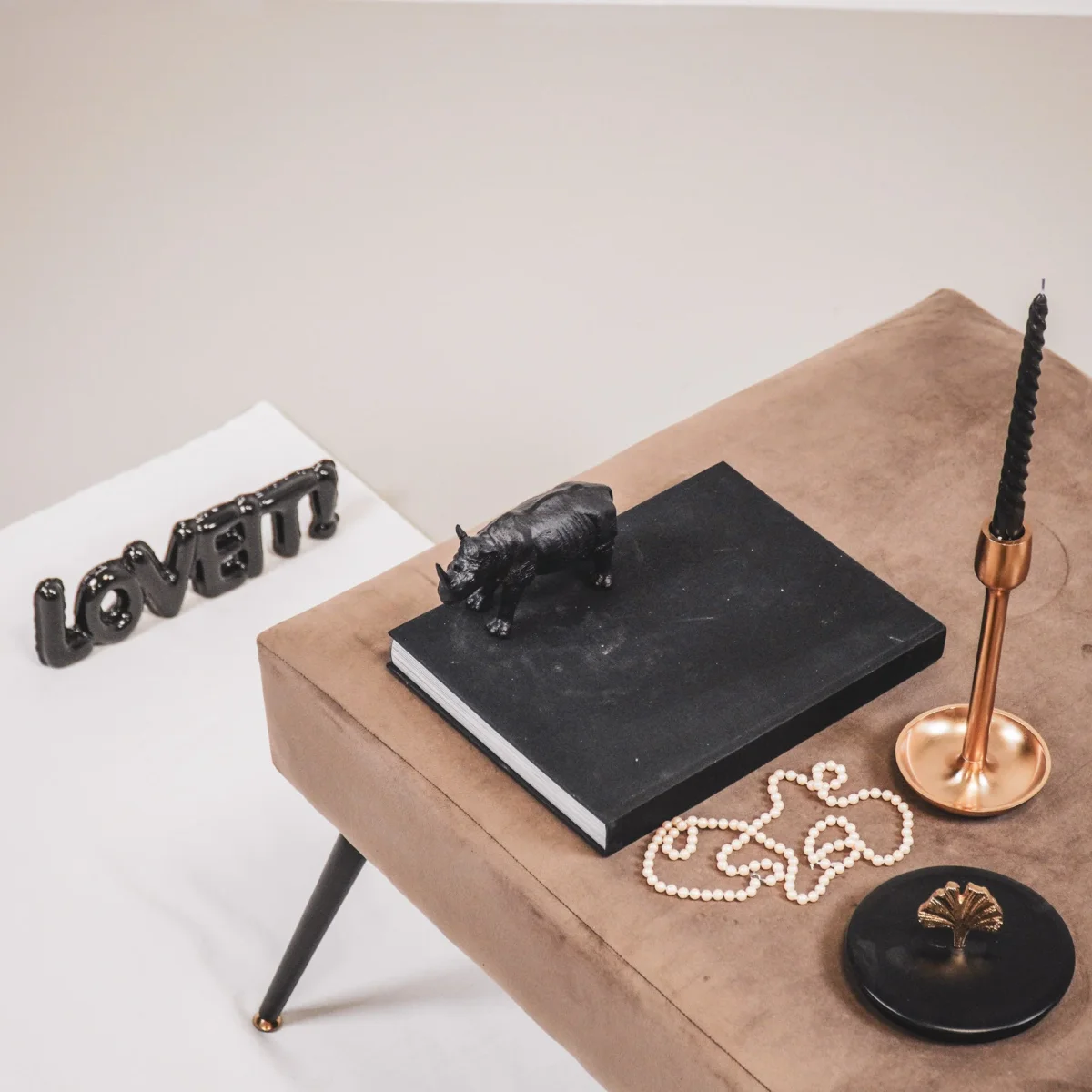 - Combineer deze neushoorn met andere zwarte dierenbeelden voor een speels, harmonieus thema in je interieur