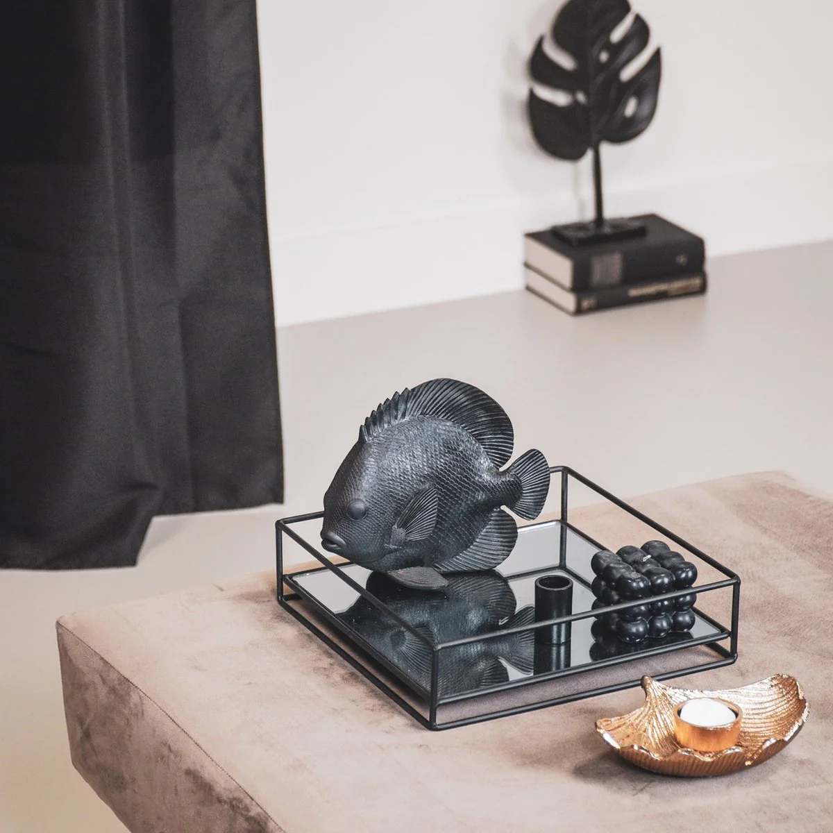 Geef je interieur een krachtige, moderne uitstraling met deze zwarte vis decoratie van Housevitamin. Met zijn strakke lijnen en matte afwerking is dit polyresin beeldje een echte blikvanger β ideaal voor een minimalistische of industriΓ«le setting.